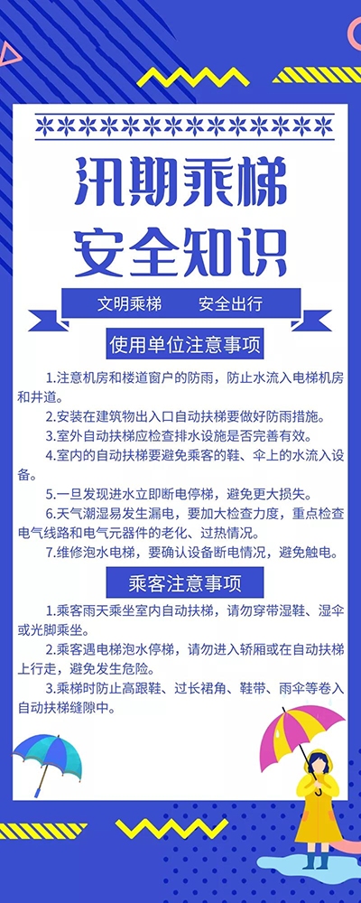 近期,江蘇省水利廳升級長江江蘇段洪水(shuǐ)橙色預警(jǐng)。長江南京下關站最高潮位超警戒水位1.22米,長江(jiāng)水位到達今年入汛以來的最高位!長江大流量、高水(shuǐ)位將持續較長時間,防汛形勢嚴峻。南京自入梅以來,雨水多、強度大,根據天氣預報,近期我市仍(réng)將(jiāng)有明顯降水過程。汛期,因電梯電子設(shè)備受潮或底坑、井(jǐng)道進水,引發(fā)運行故障的概率隨之增加,電梯使用單位和乘客應注意以(yǐ)下事項: