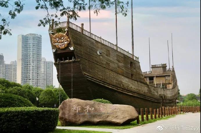 離開玄武湖,在模範馬路的盡頭,可以眺望到當初鄭和下西洋的起點——南京寶船遺址公園。