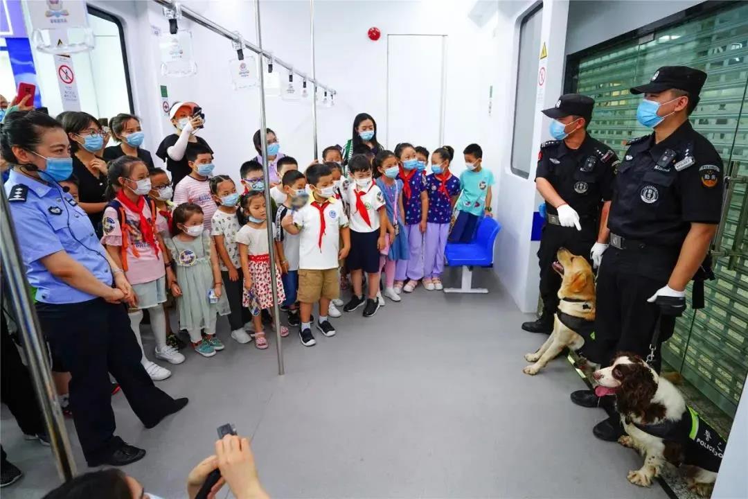地鐵公安民警向參觀體驗的小學生講解安防知識(shí)。警方供圖