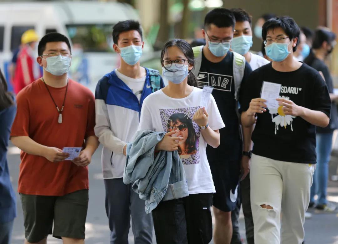 學校(xiào)設置了4個考生通道,考生需佩戴口罩,