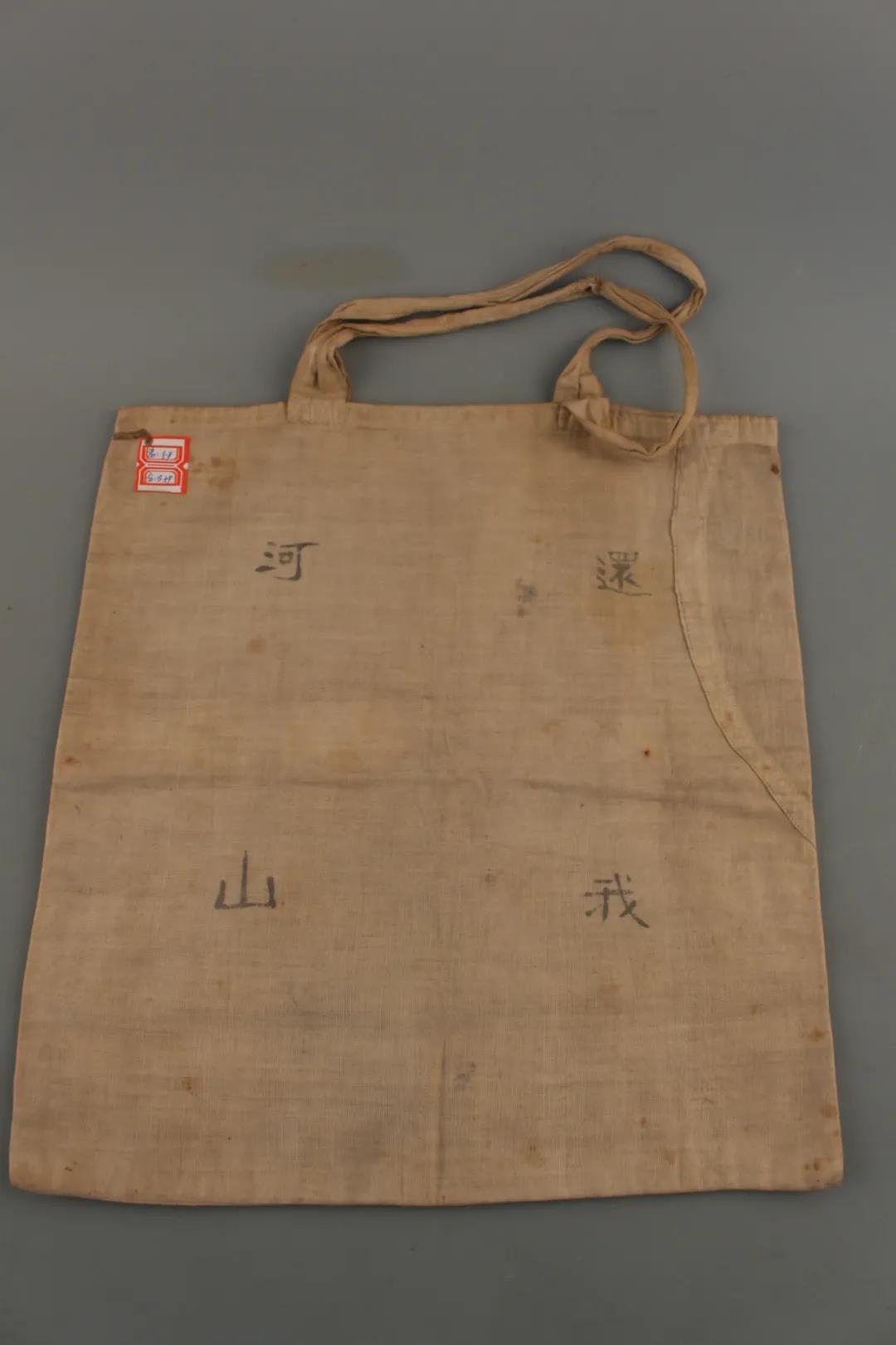 “還我河山”,車向忱夫婦用過的手提兜上,四個字依然清晰(xī)。“九•一八”事變後,東北淪陷,教育家車向忱多次往返關內外,積極組(zǔ)織抗日救亡運動,還創辦了許(xǔ)多平民學校。這個手提兜原(yuán)為白色,曆(lì)經歲月和戰火,現(xiàn)已(yǐ)陳(chén)舊發黃。布(bù)兜正麵繡有黑色“收(shōu)複東北失地,1938”字樣,背麵寫有“還我河山”字樣。