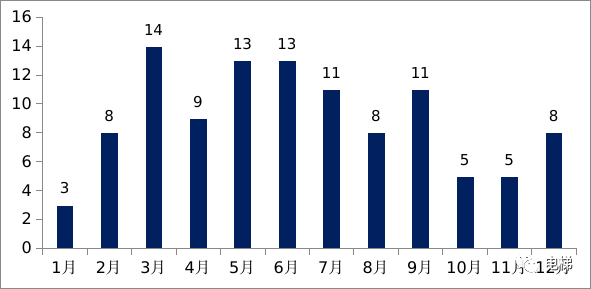 圖6 2022年1—12月特種設備(bèi)事故起數分布圖(tú)